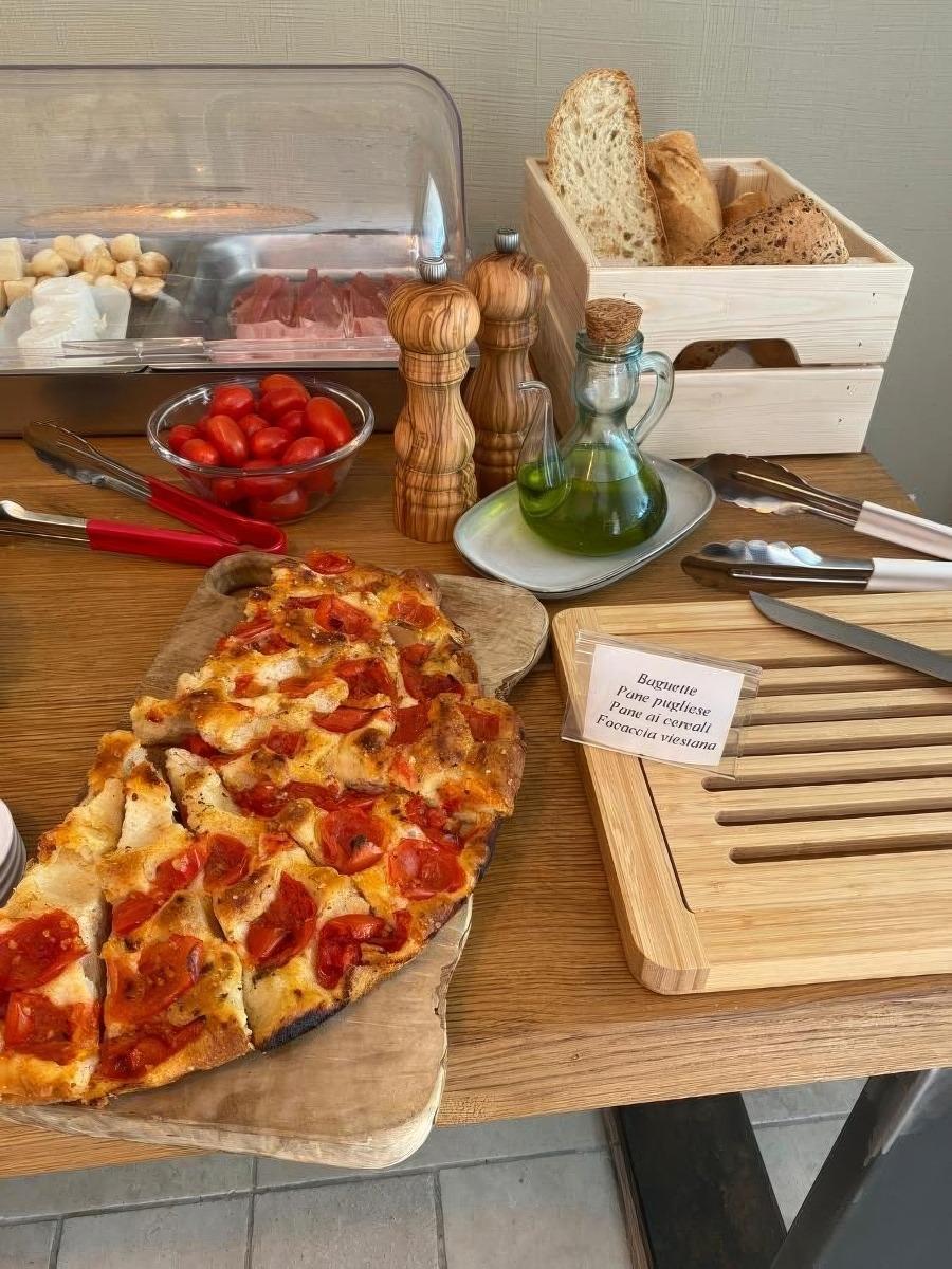 Our breakfast is continental and buffet-style. You will be able to enjoy all the natural delicacies from our region. Fresh fruit from Nonno Giuseppe and jams made by the owner, Pugliese focaccia, and the traditional bread and tomato dish seasoned with our own extra virgin olive oil. Carefully prepared and assisted by the owner in his own kitchen within the establishment.